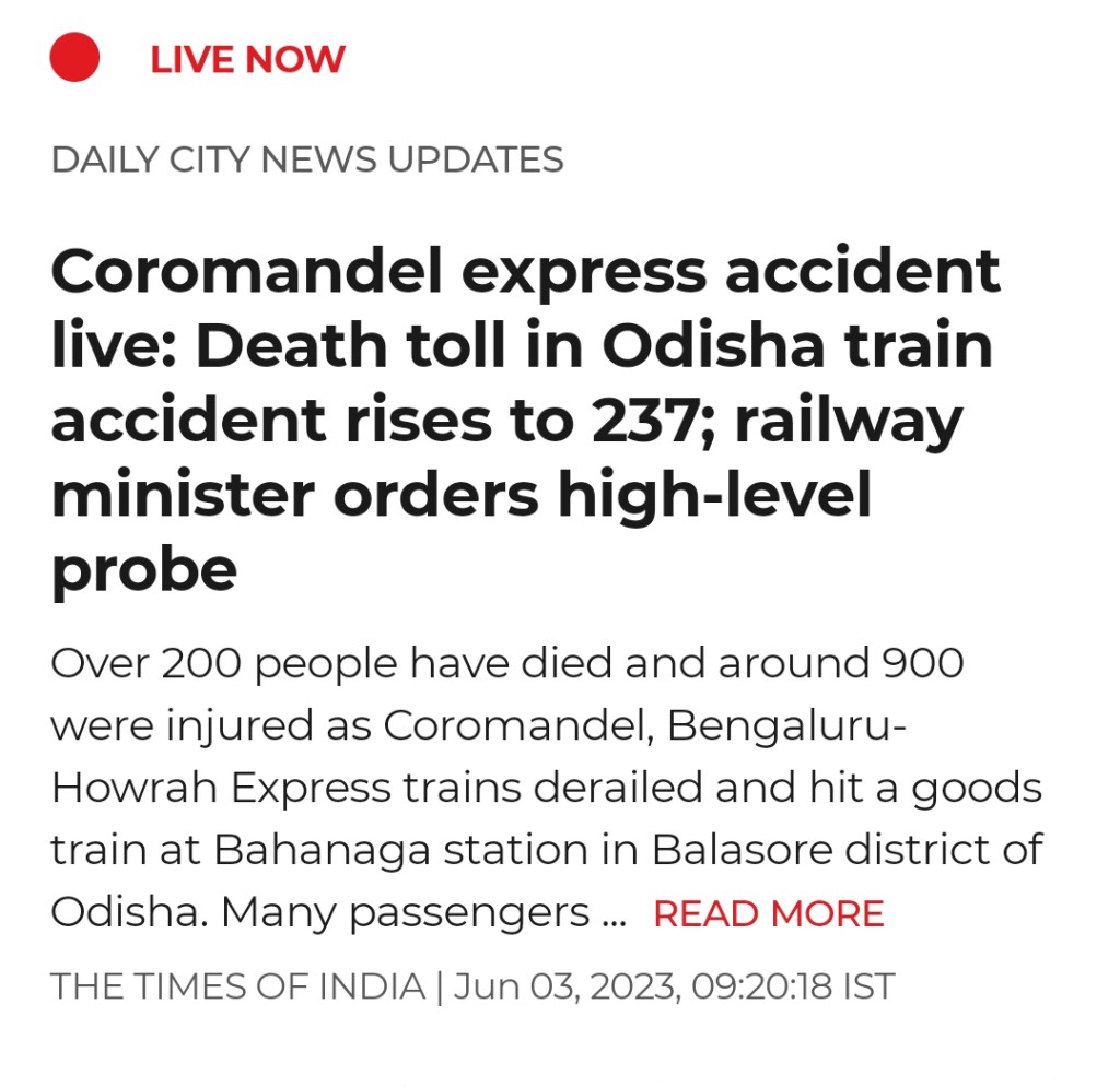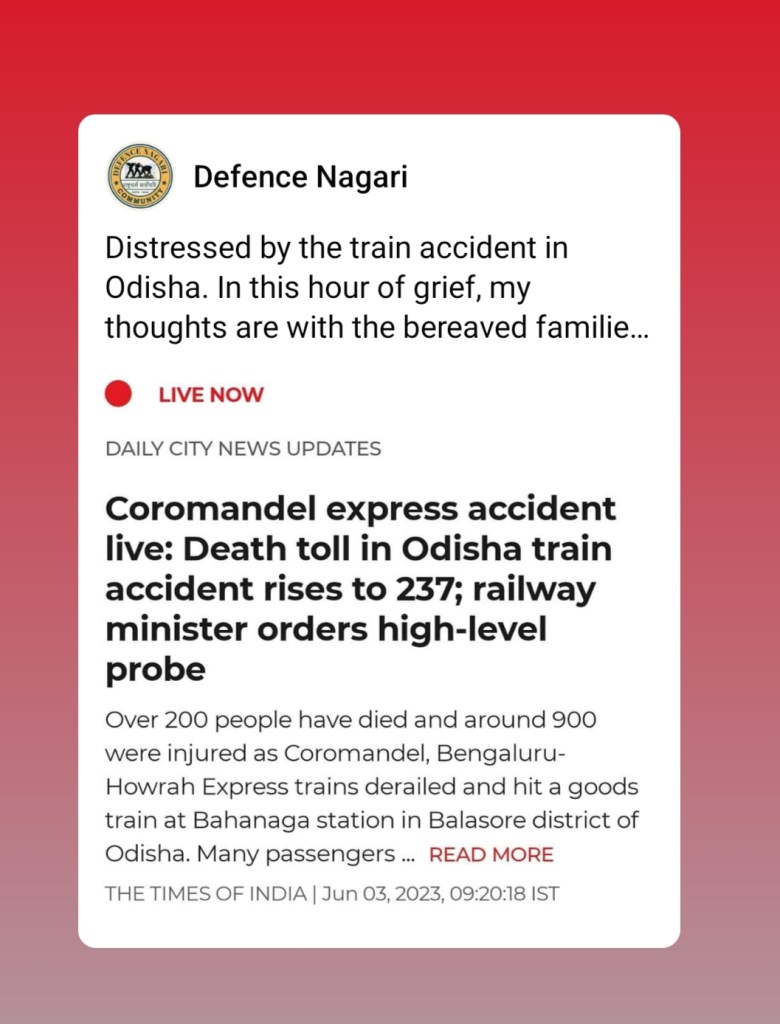 Distressed by the train accident in Odisha. In this hour of grief, our thoughts are with the bereaved families. May the injured recover soon.